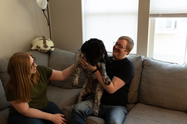 We adopted our dog, Artemis, in August 2024. She is a two-year-old basset hound- poodle mix. She was one of the missing pieces of our family. She is quite the character with such a fun personality. She is great with younger children and warms up quickly to adults. She loves to play fetch with her tennis balls and has lots of fun playing with the other dogs in our neighborhood. We enjoy taking her for long walks through the nearby park to make sure we all get in our exercise. She also loves to go for car rides, and we take her with us wherever we can. At the end of the day, she snuggles up to one of us as her way of showing her love- which we adore! She has made our lives much more exciting, social and active.
